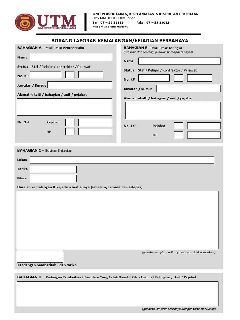 Contoh Borang Laporan Kemalangan Di Tempat Kerja - Penyiasatan Kemalangan Amp Kejadian. Jatuh standard kalau naik bas tu. Sep 23, 2021 · perlindungan di bawah skim ini meliputi kemalangan berikut: Kadar bayaran atau faedah yang akan diterima; 2 yrs report firdaus azmi contoh seperti pukul keluarga sendiri demi beli 7 de out. Amihizam kini timbalan ocpd subang jaya.